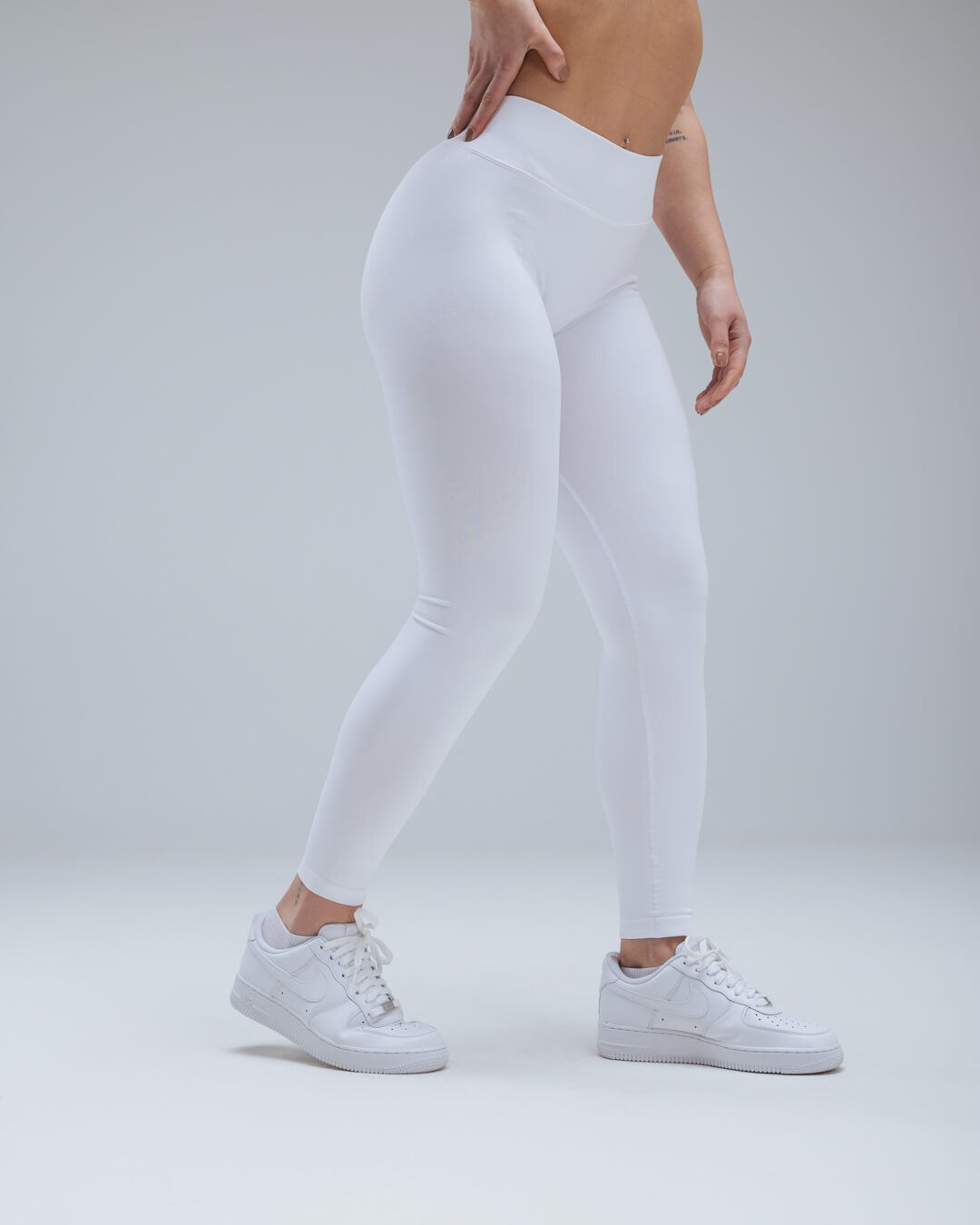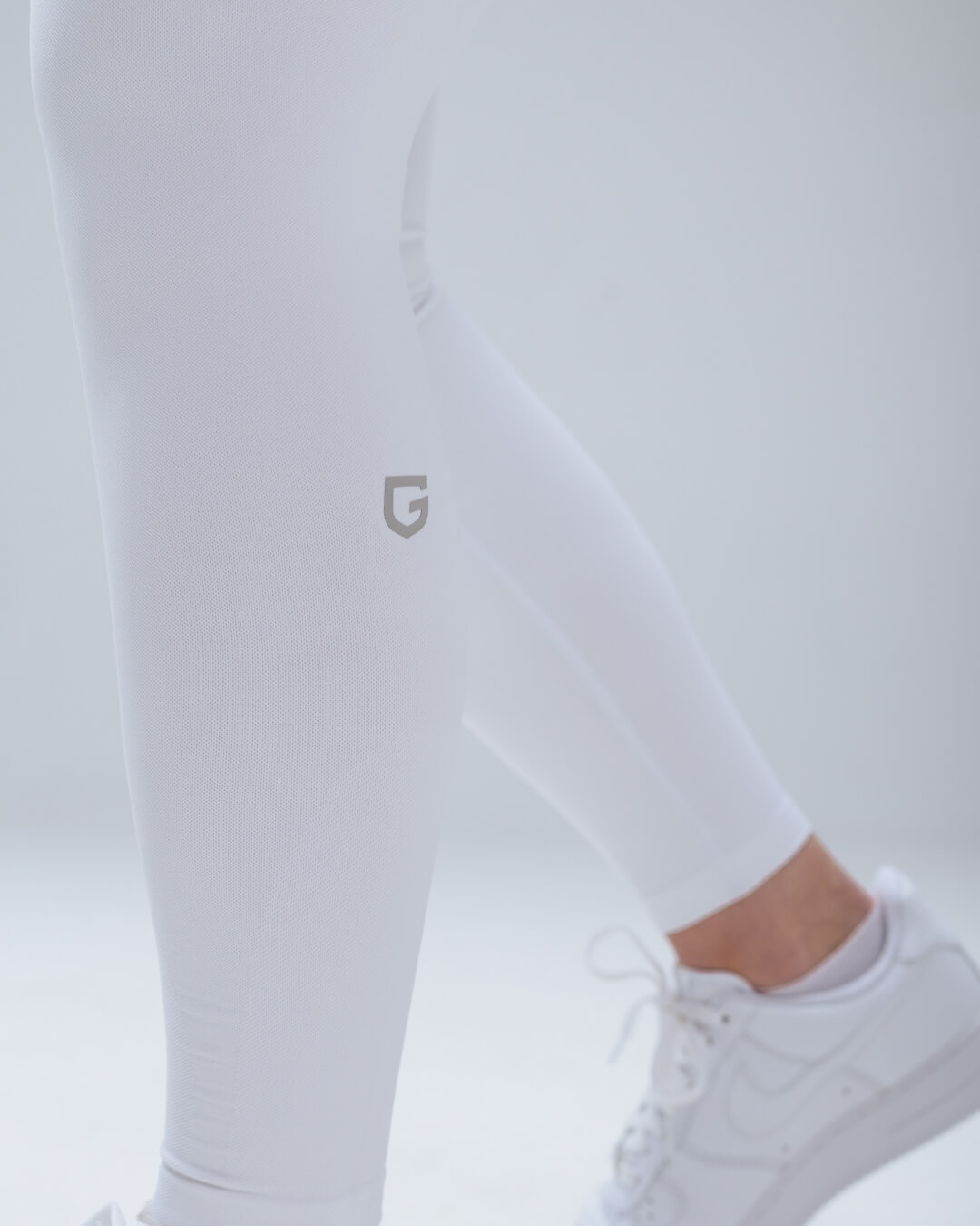 Izrađene od mekanog, elastičnog i kompresionog materijala, helanke se savršeno prilagođavaju telu, pružaju potpunu slobodu pokreta i sigurnost tokom treninga. Visok struk obezbeđuje stabilnost i podršku, dok glatka tekstura i čista bela boja daju premium i elegantan izgled.